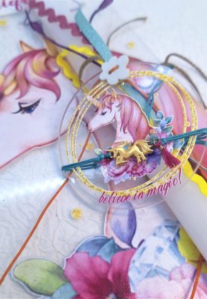 Λαμπάδα Μονόκερος με Διακοσμητική Πλάτη