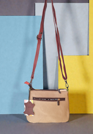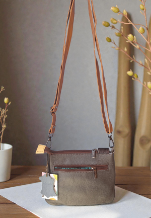 Δερμάτινη Τσάντα Δίχρωμη – Μουσταρδί με Γαλάζιο