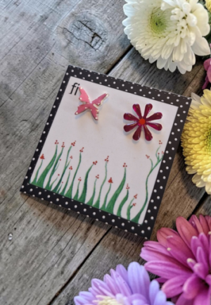 Σκουλαρίκια Mini Butterfly and Daisy Pink Red