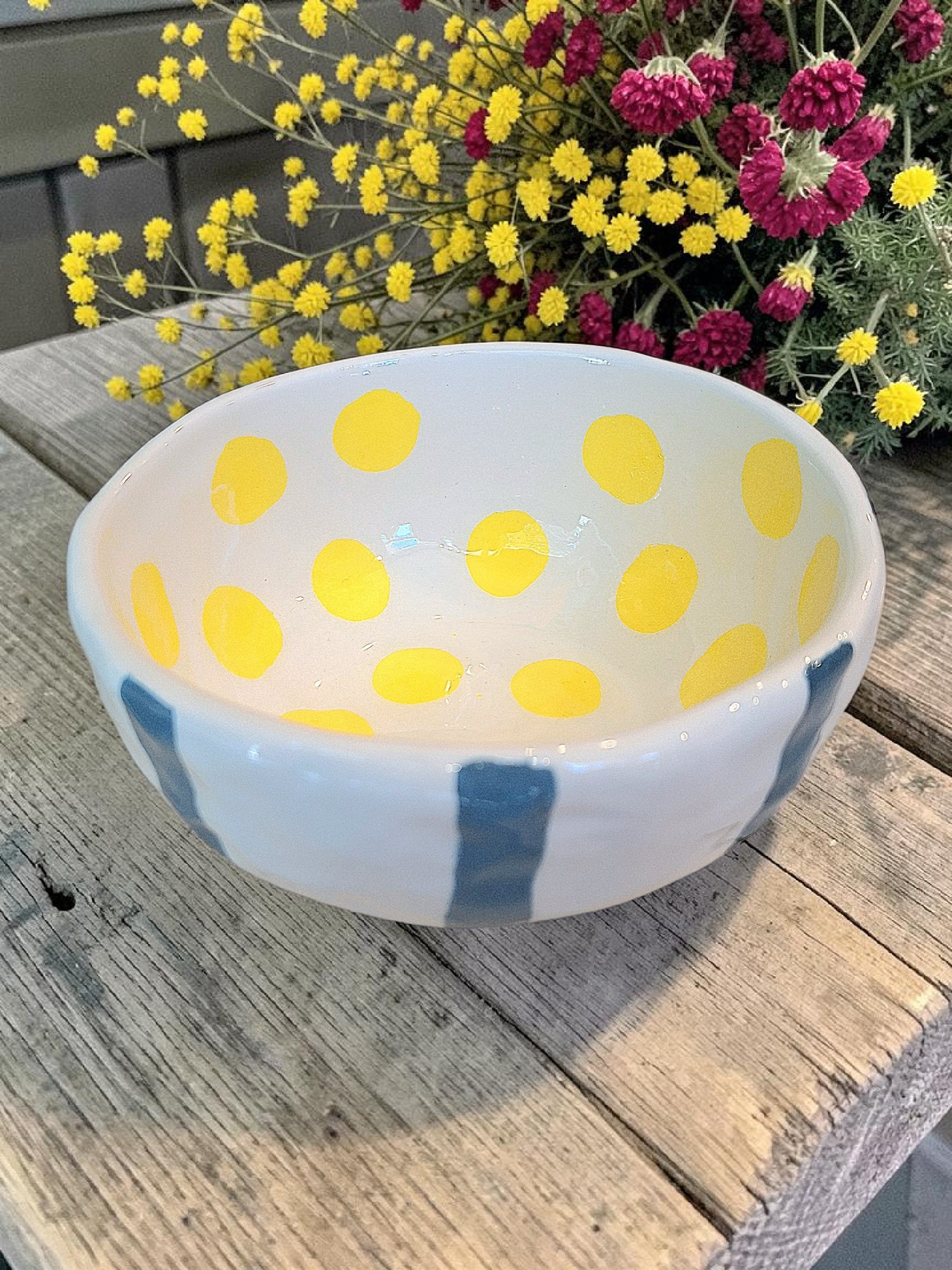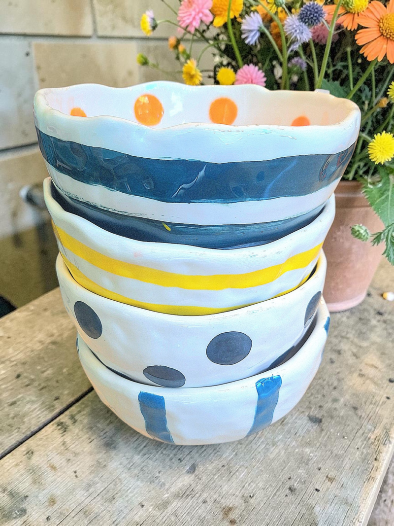 Όλα τα κεραμικά μας είναι ψημένα δύο ή τρεις φορές, ζωγραφισμένα με μη τοξικά υλικά. Άρα, είναι ασφαλή για χρήση βρώσιμων και μη προϊόντων.