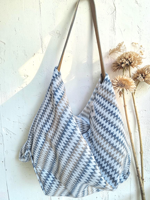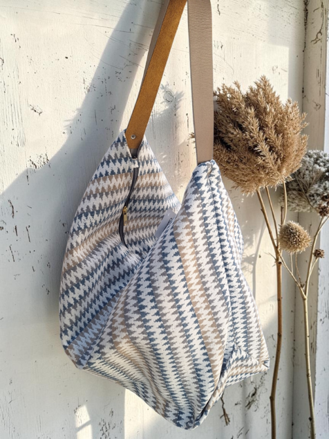 Από δροσερό ύφασμα με γεωμετρικά μοτίβα σε παλ χρωματισμούς, ακουμπά σταθερά στον ώμο χάρη στον δερμάτινο ιμάντα της. Στο εσωτερικό θα βρεις ένα πρακτικό βαθύ τσεπάκι. Κλείνει με φερμουάρ.