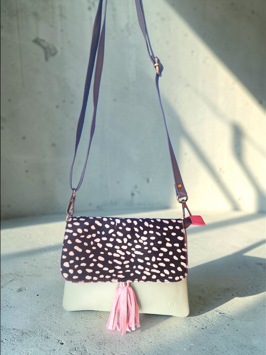 Δερμάτινη Τσάντα Animal Print with Tassel – Light Mint