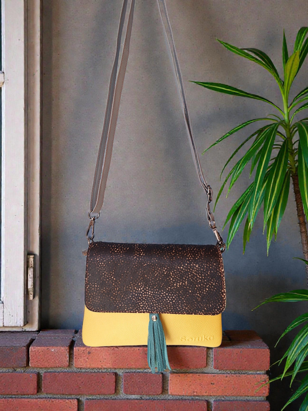 Δερμάτινη Τσάντα Animal Print with Tassel – Yellow