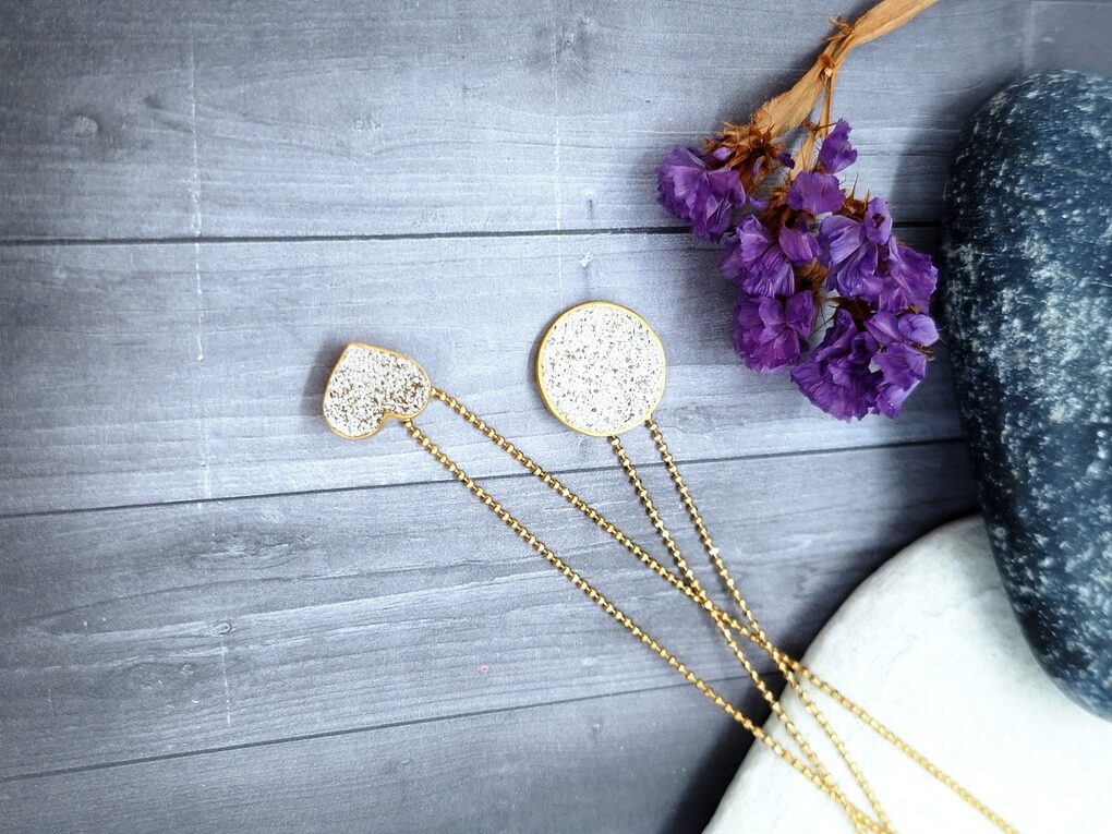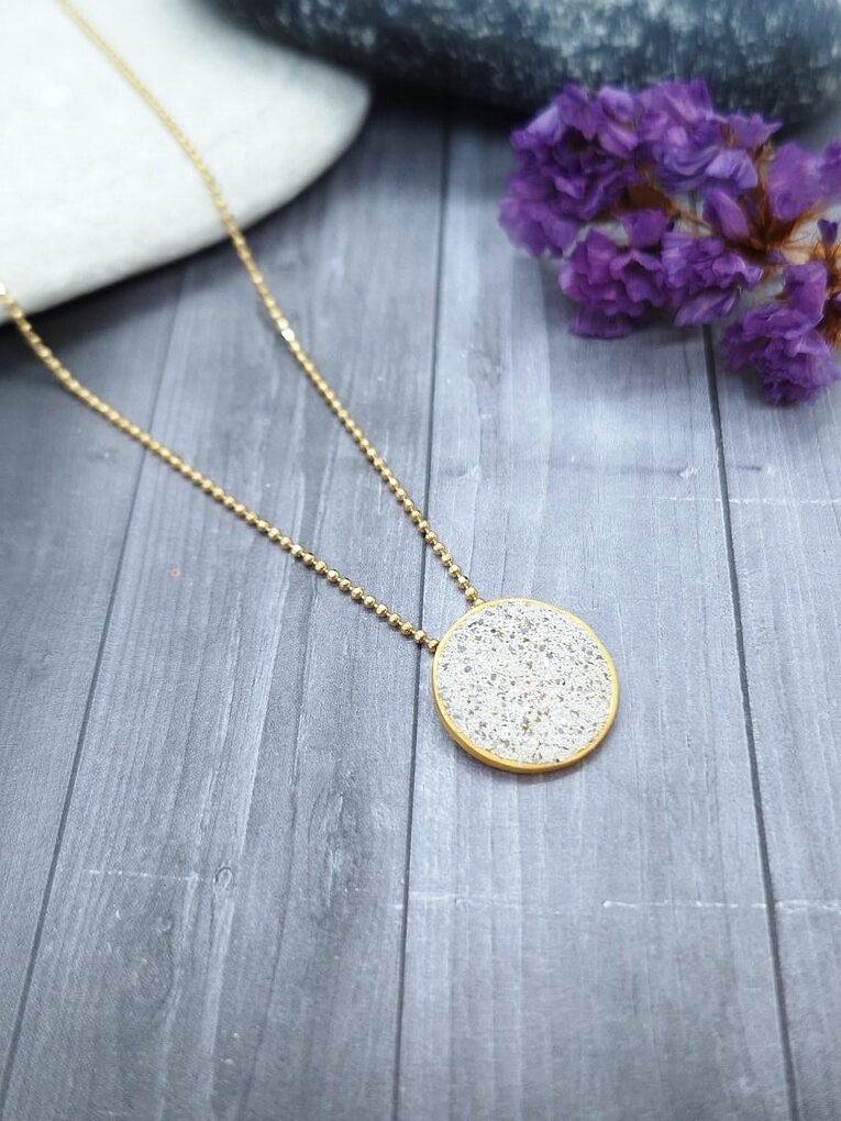 Ασημένιο επίχρυσο κολιέ με λευκό σμάλτο που δίνει το εφέ του τσιμέντου.