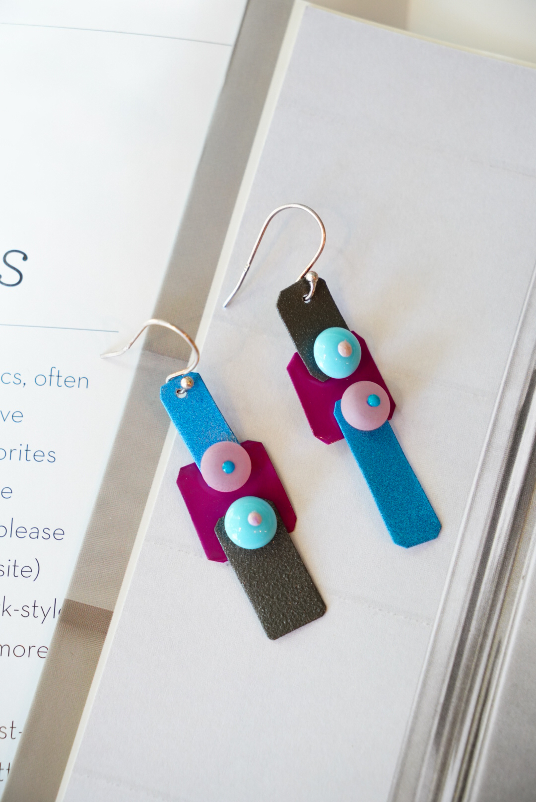 Μεταλλικά σκουλαρίκια δουλεμένα με ηλεκτροστατικές βαφές. Hooks από ασήμι 925.
