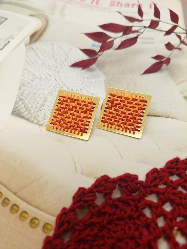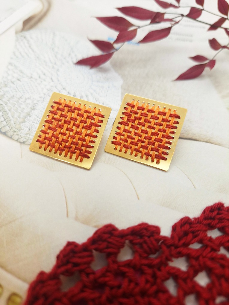 Σκουλαρίκια με Κέντημα Πορτοκαλί Εκάι