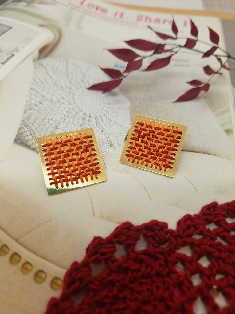 Κέντημα επάνω σε μέταλλο τετράγωνου σχήματος, για ιδιαίτερες και μοναδικές εμφανίσεις.