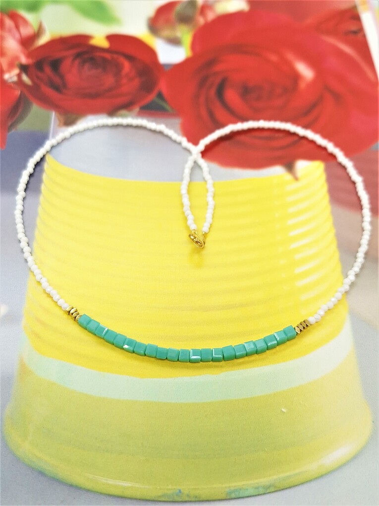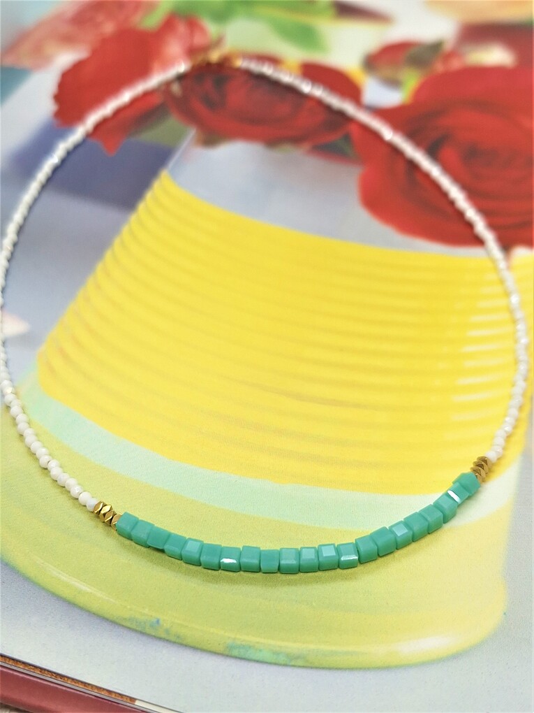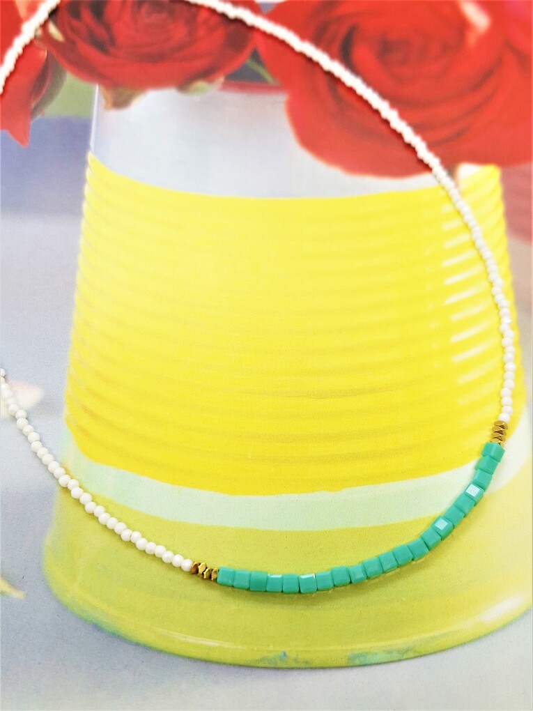 Χάντρες που παίζουν με το φως και τιρκουάζ απόχρωση που φέρνει στο νου καλοκαίρι, νησιά και ανεμελιά.