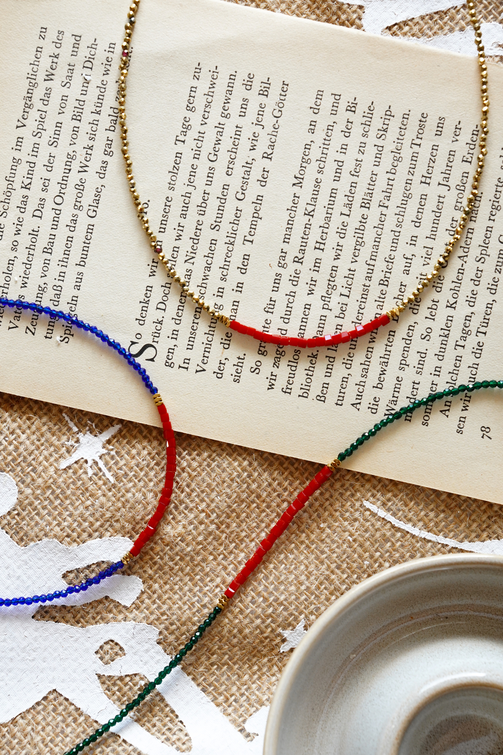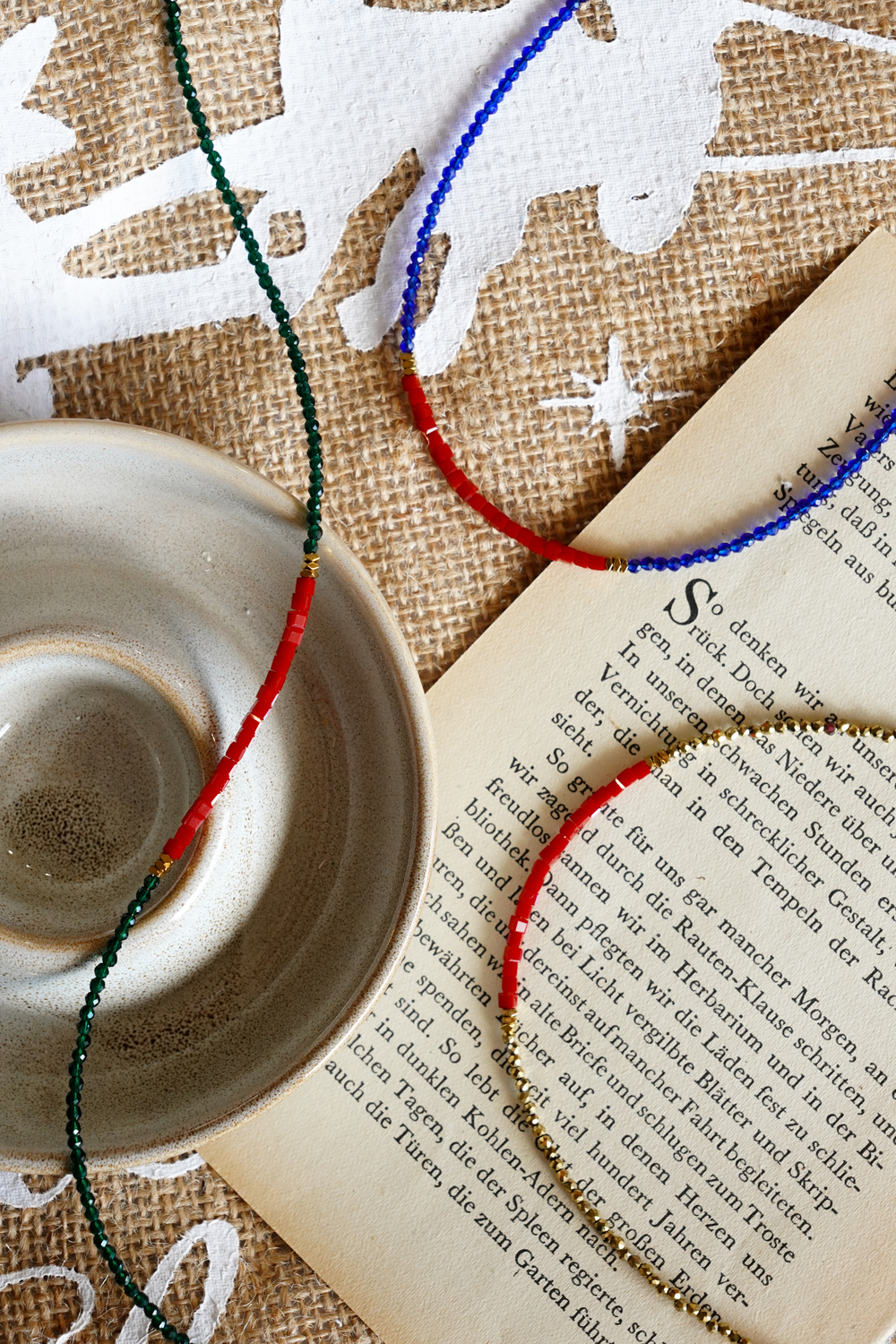 Κόκκινες κρυστάλλινες χάντρες συνδυασμένες με μπλε, πράσινες και χρυσές, για να δημιουργήσεις ζωηρές εμφανίσεις.