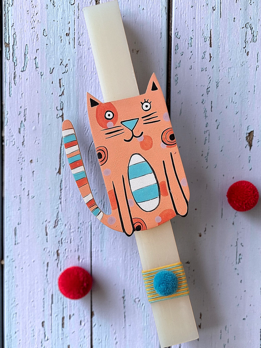 Λαμπάδα Ξύλινα Ζωάκια – Γάτα