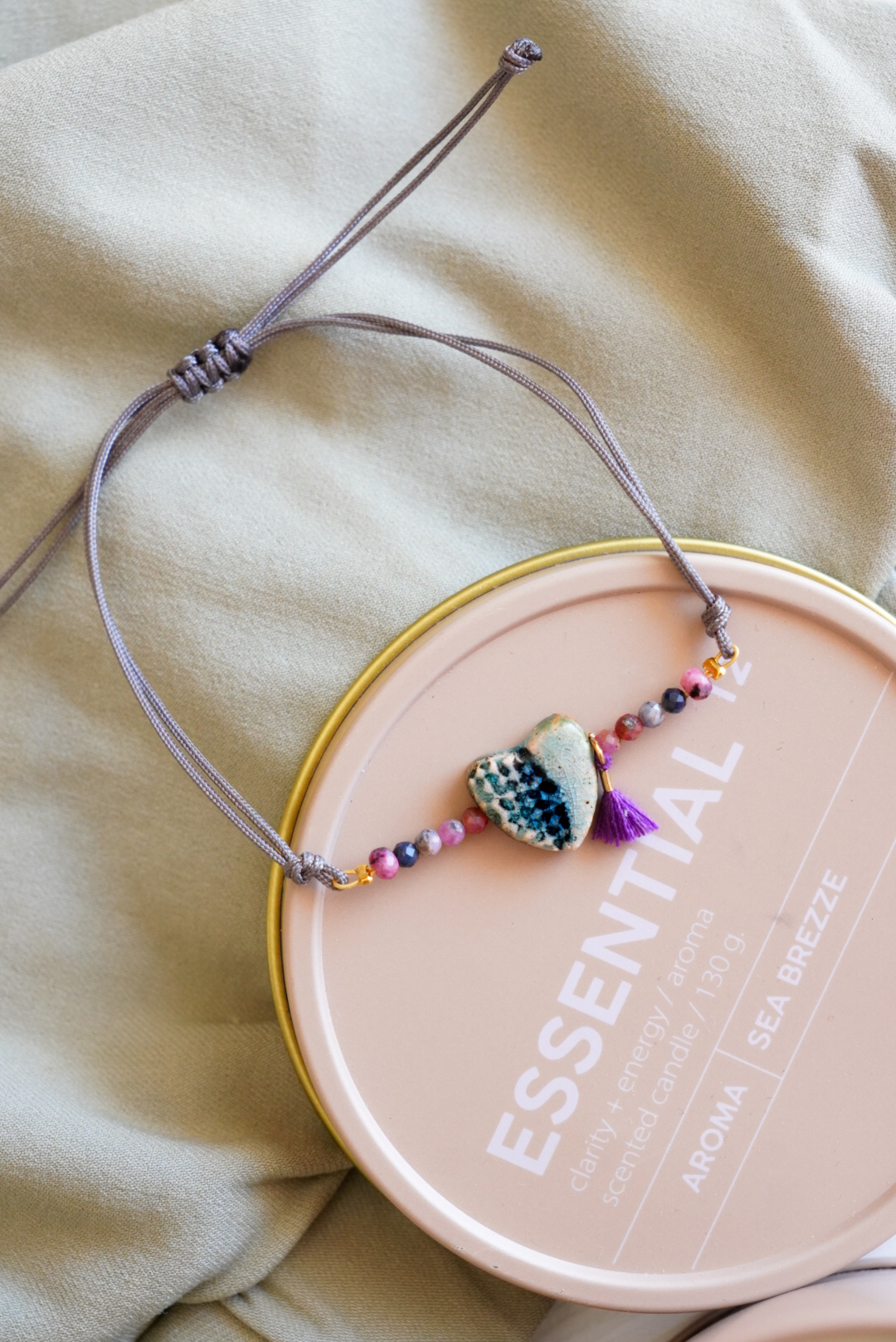 Βραχιόλι ρυθμιζόμενης διαμέτρου με κεραμικό στοιχείο και λεπτομέρειες από τουρμαλίνη.