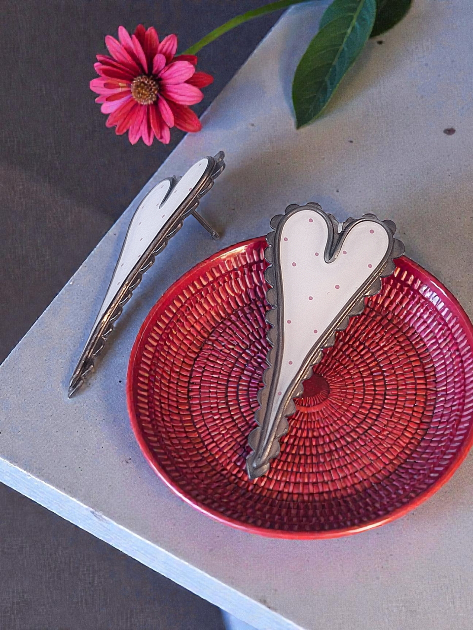 Σκουλαρίκια Καρδιές Polka Dots in Cream